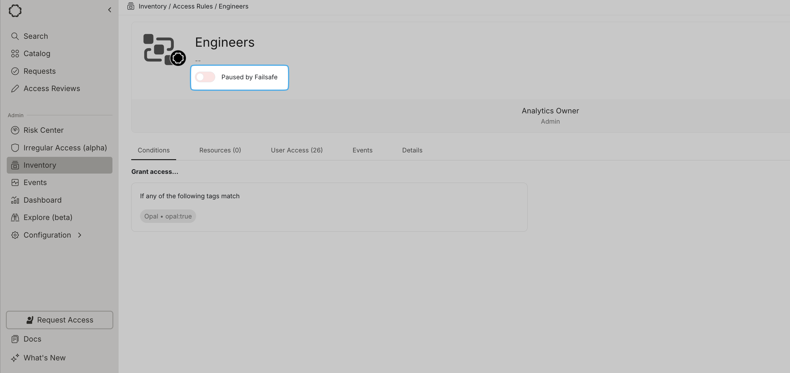 Failsafe functionality is available on Opal cloud and self-hosted Opal