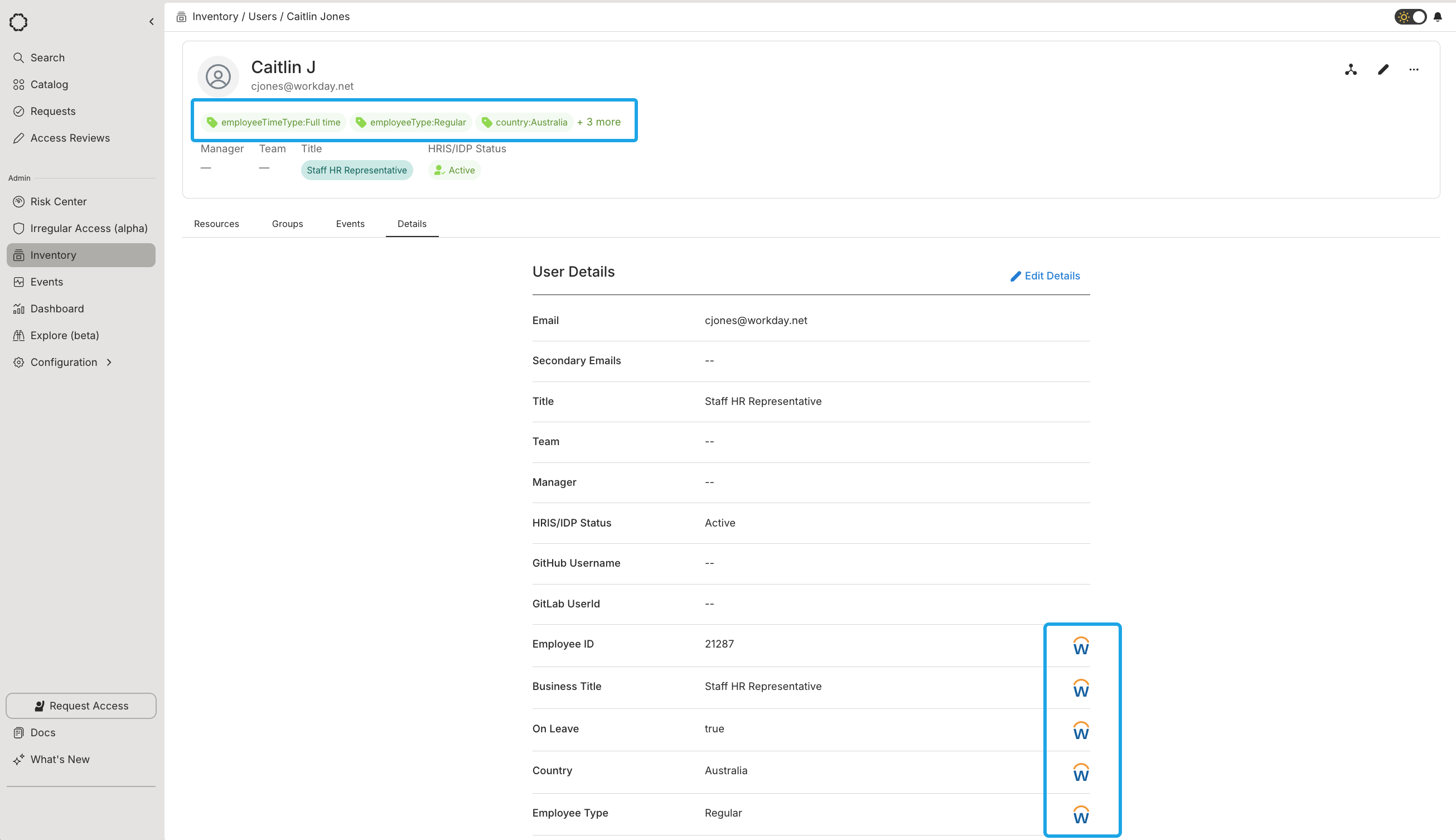 - Import attributes from your IDP/HRIS system as User Tags (custom attributes)