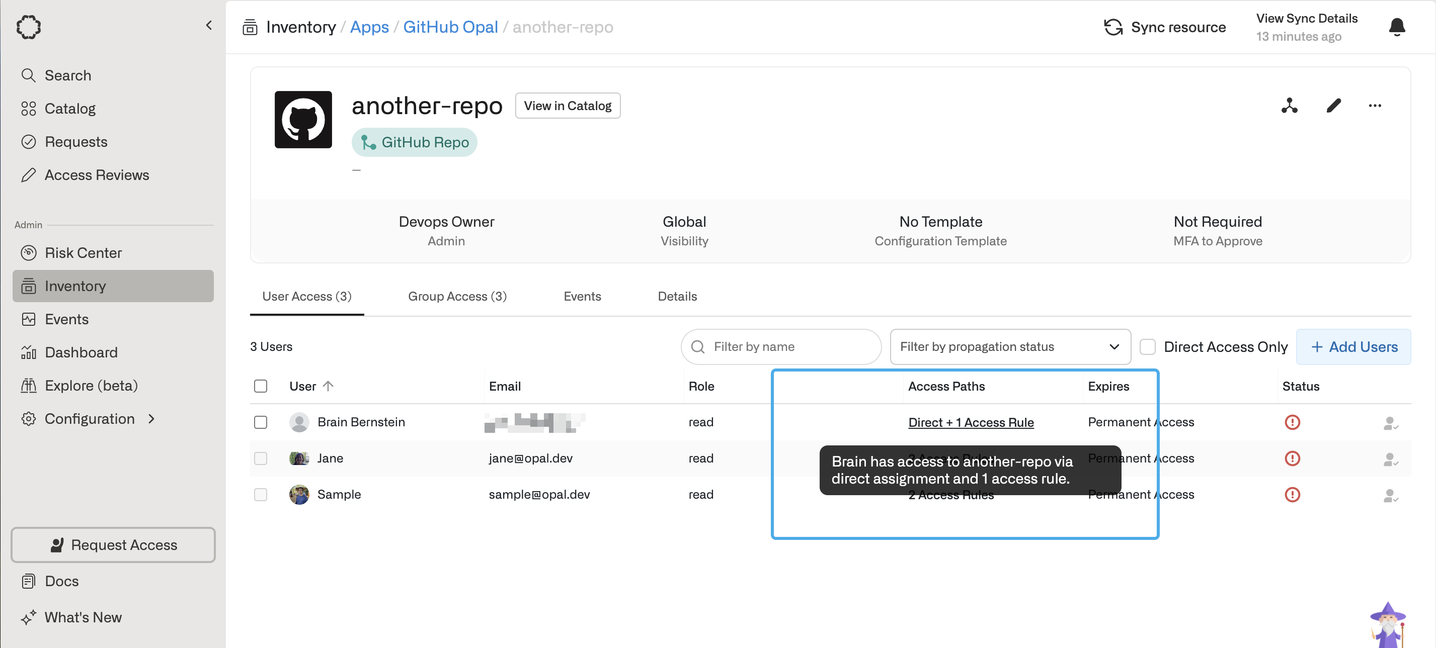 - Provision access based on workplace events (e.g. Joiner, Mover, Leaver)—Opal automatically syncs users and updates access downstream when users onboard, transfer, or leave your IDP or HRIS