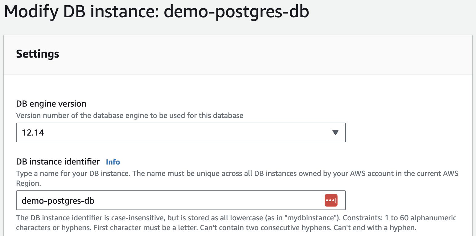 Time estimate: 15 min The database is the most sensitive piece of the Opal infrastructure as it holds all the state. The only thing not included is the Admin console configuration. It’s a good practice to set up automated backups in the event that data need to be recovered, or if the database becomes unhealthy. Here are the steps to enable backups on Amazon RDS:- Select the database instance, then click Modify: