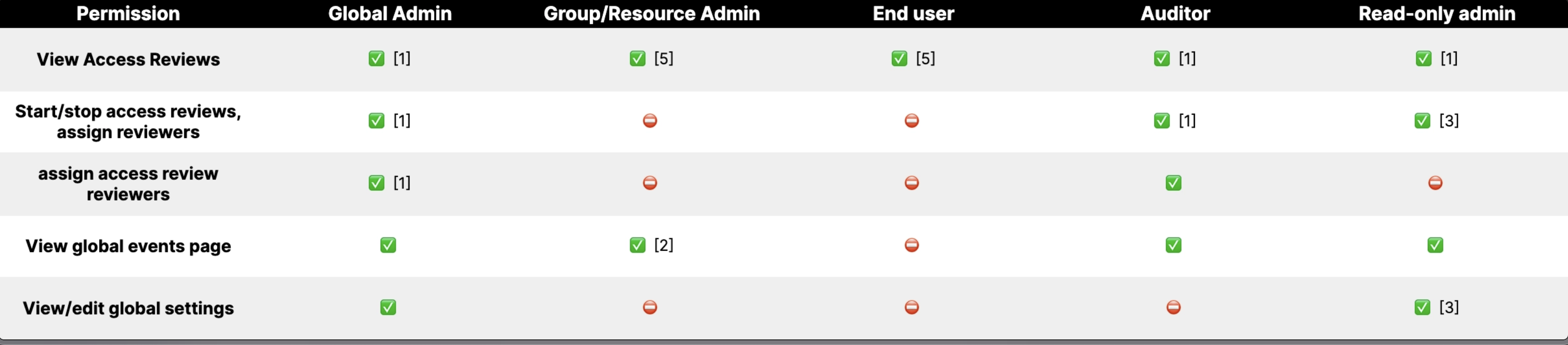 - Auditor: Users who can start and stop user access reviews. In addition, they can assign any reviewer to review
