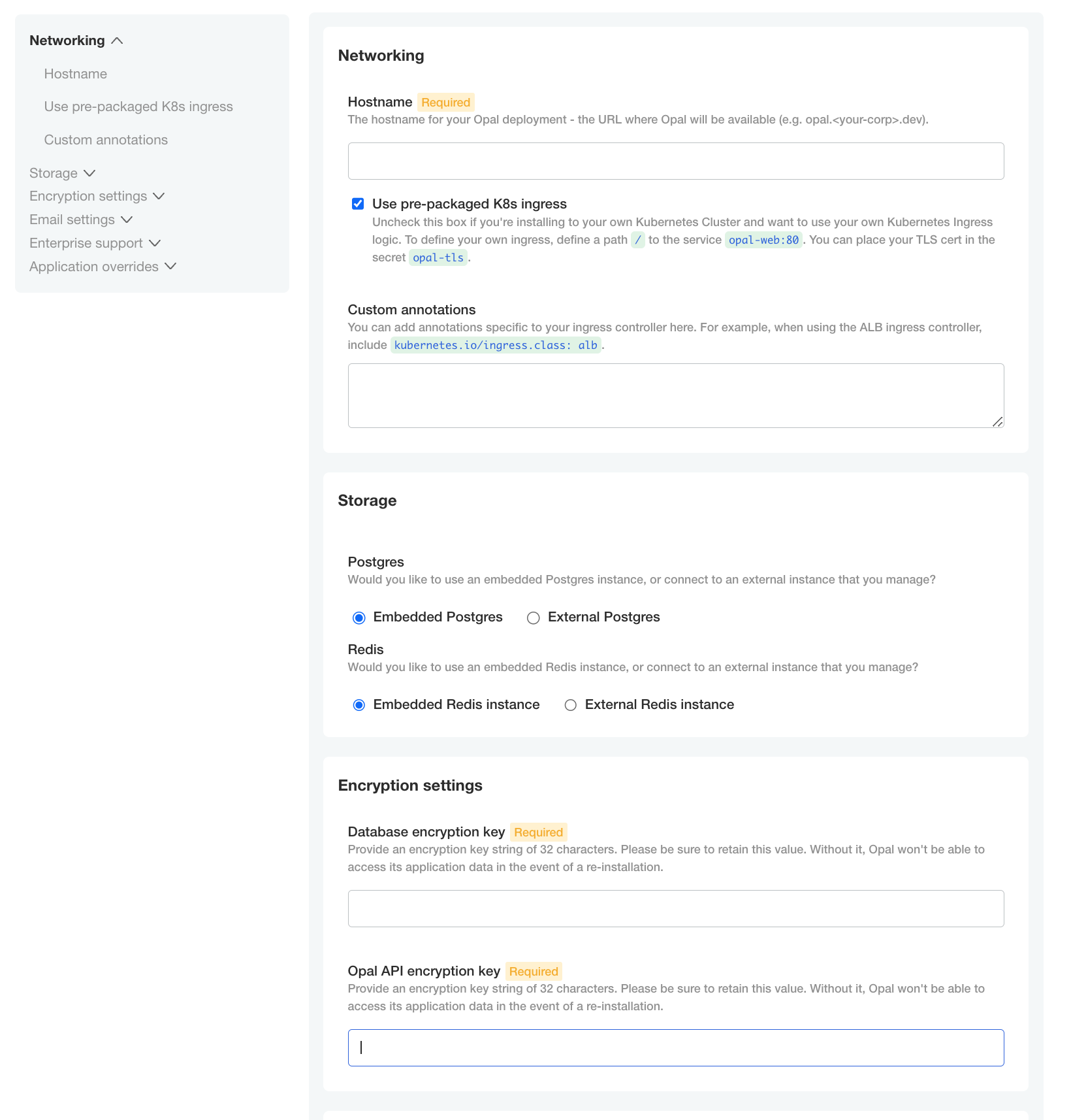 - Hostname: Enter the hostname used to access the Opal application. This cannot be updated later.