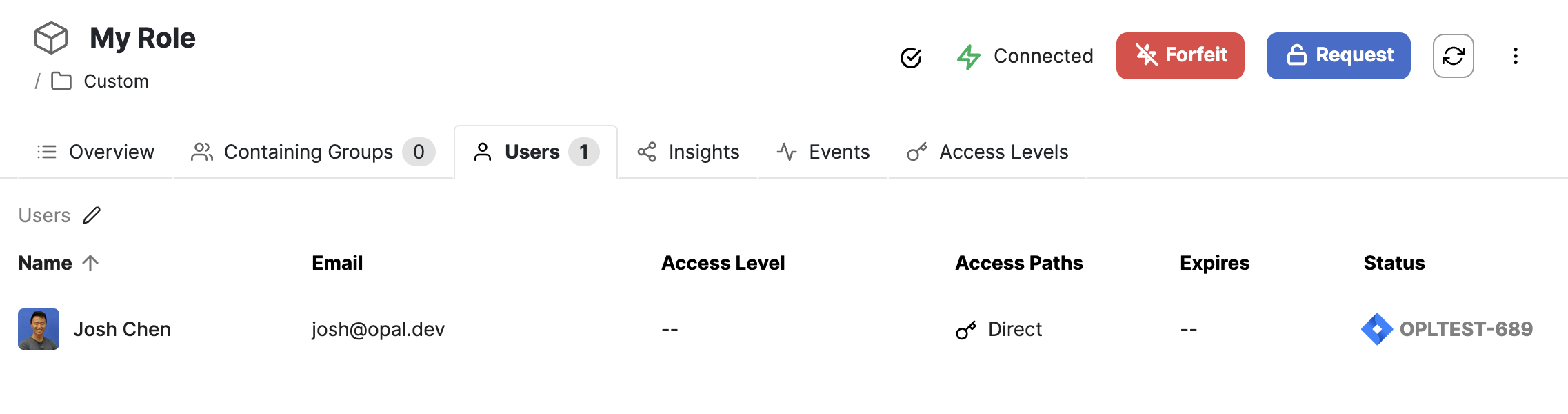 When ticket propagation is enabled, Opal files a ticket on your ticket provider when users are granted access, have access revoked, or both. When tickets are completed or marked Done in the ticketing provider, Opal propagates the access state to any connected remote systems.Example