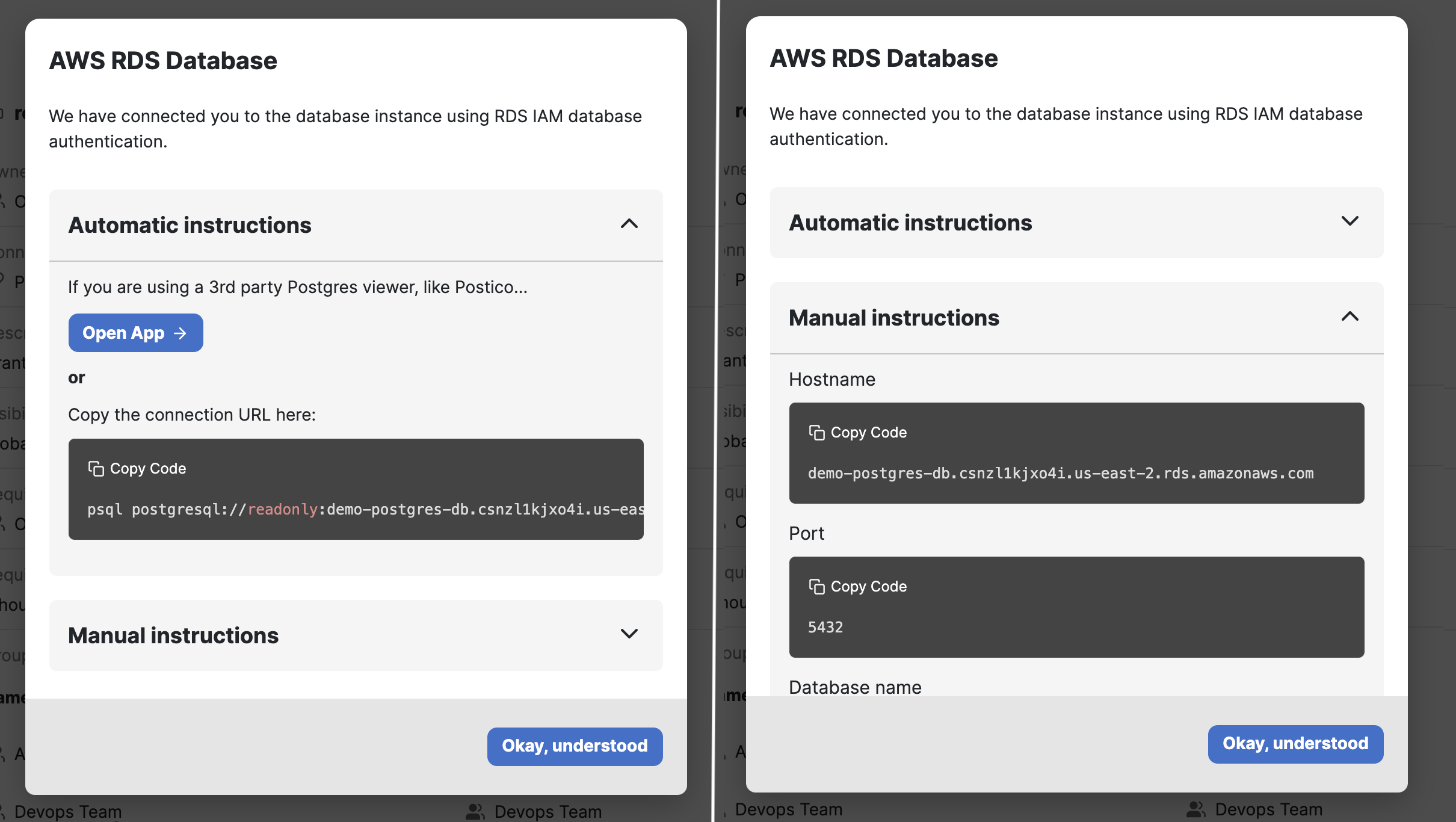 If you’d like to instead define your own database users with custom amounts of access, you can do that easily in one of two ways: through Opal UI, or with tags.Opal UI