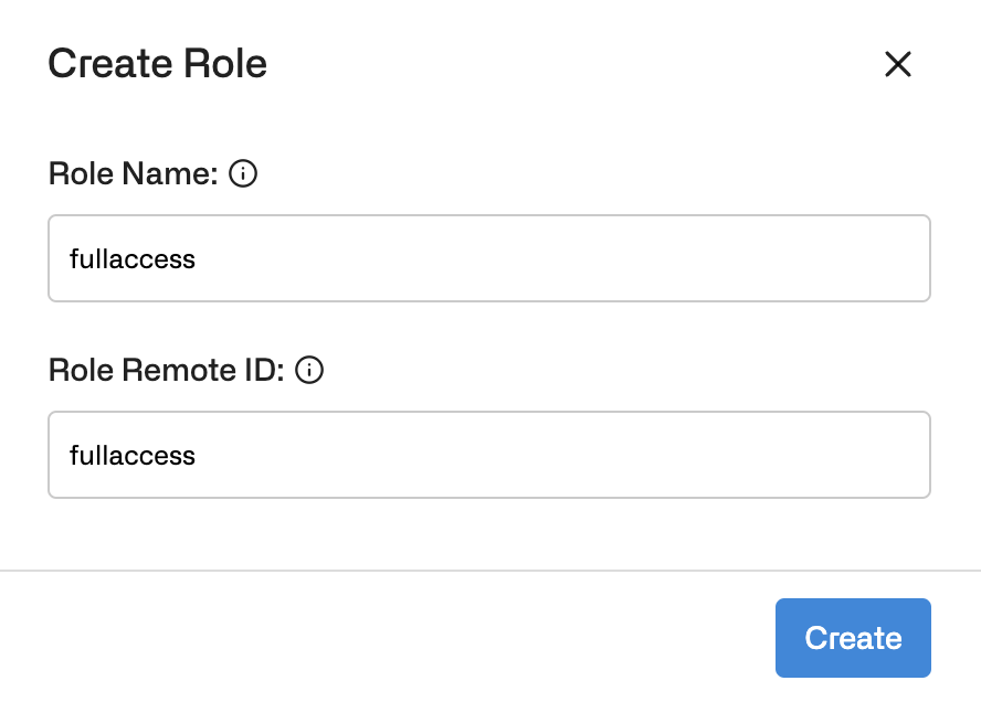 - Add a role name, and the database username as the Role Remote ID, then select Create.