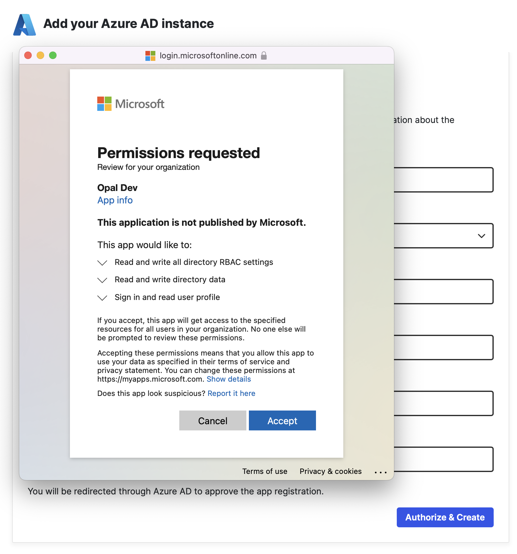 To manage access to Azure Subscriptions and Resource Groups, follow the instructions here before continuing. Note that this step can be skipped if you only want to manage Azure AD groups with Opal.Set up Opal connection