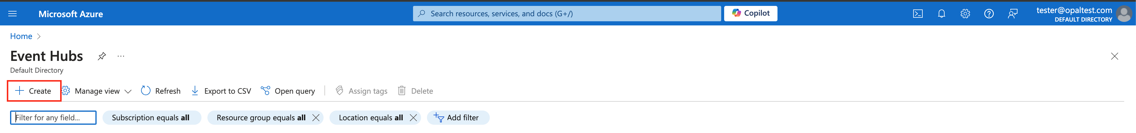 Go to Event Hubs and click +Create.