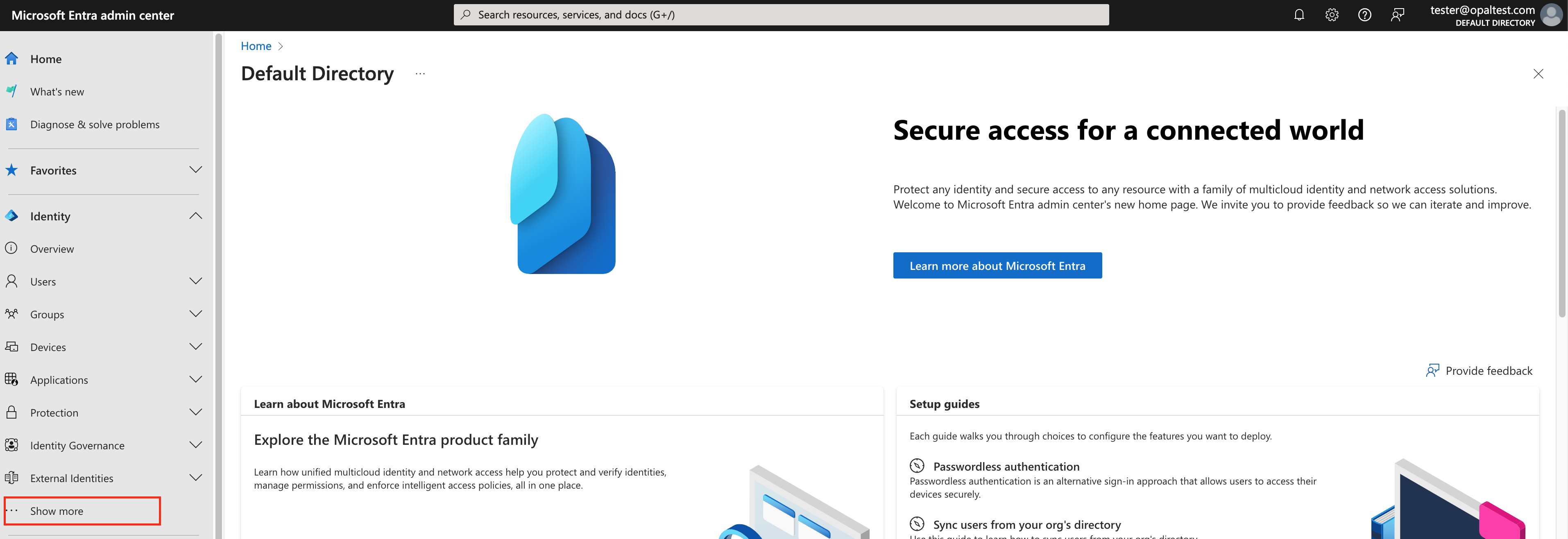 Go to Microsoft Entra and click Show More on the left hand bar.