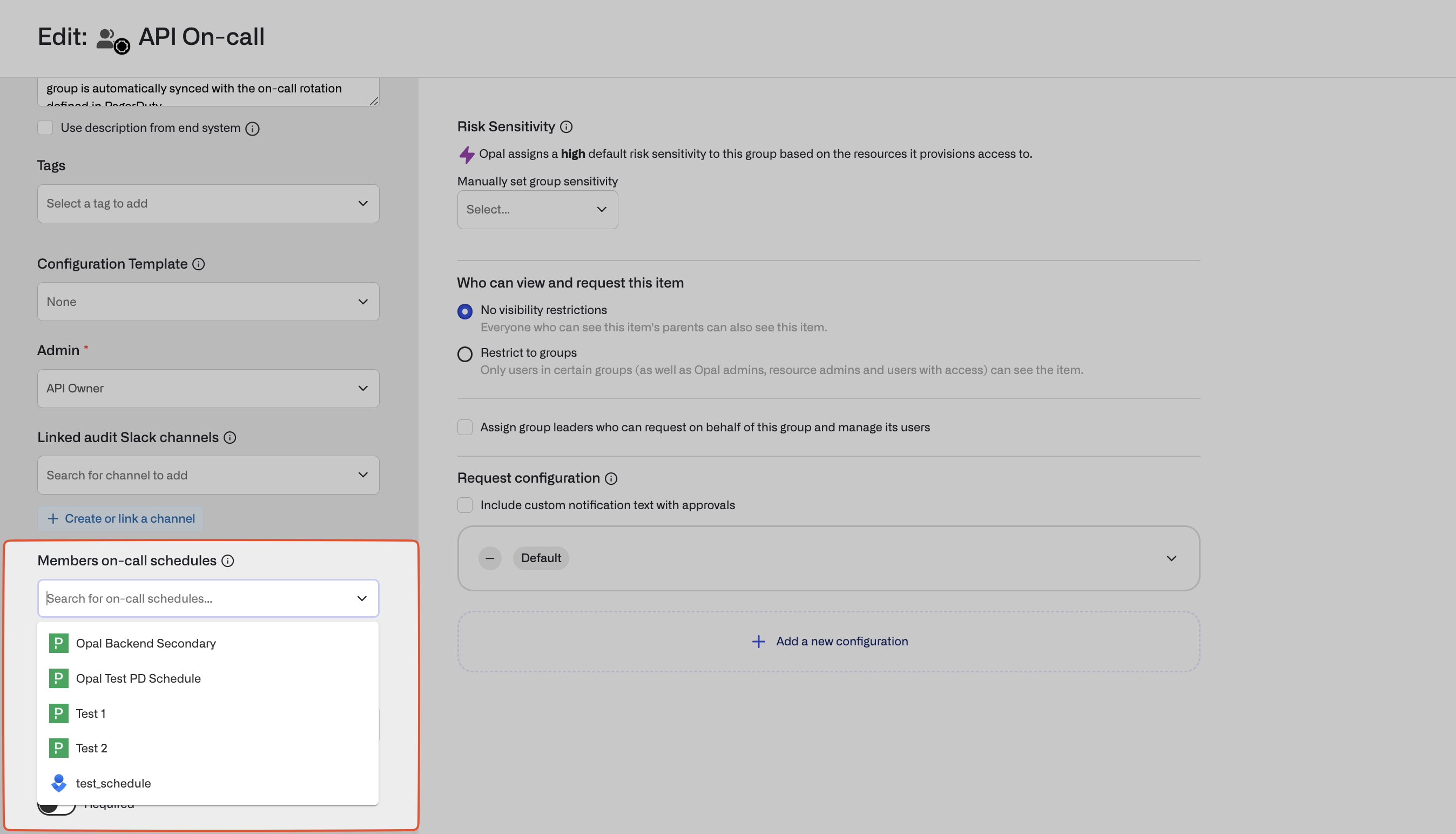 Any group in Opal can be synchronized with a PagerDuty schedule. Edit the group and select schedules to sync.