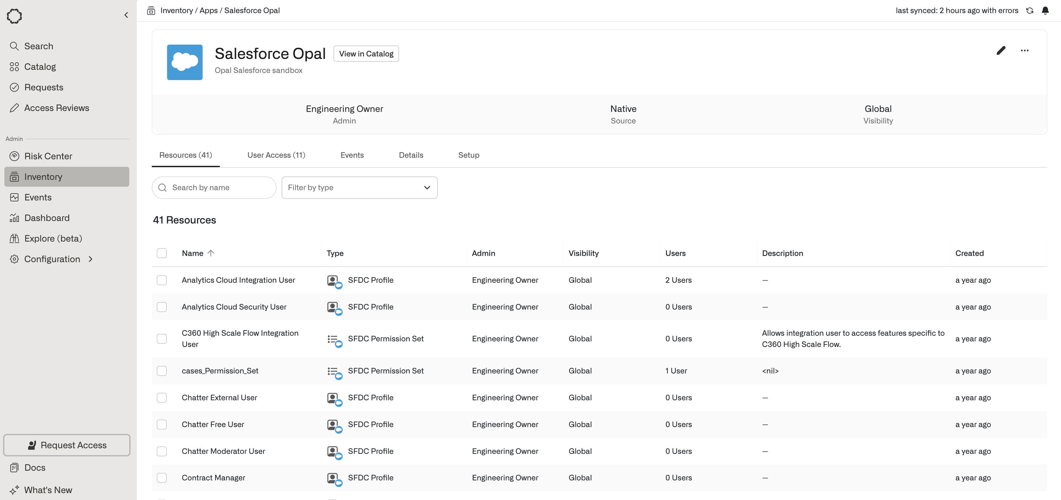 In Opal, go to the Inventory, select the +App icon, and go to the Salesforce app.2. Create a service account for Opal