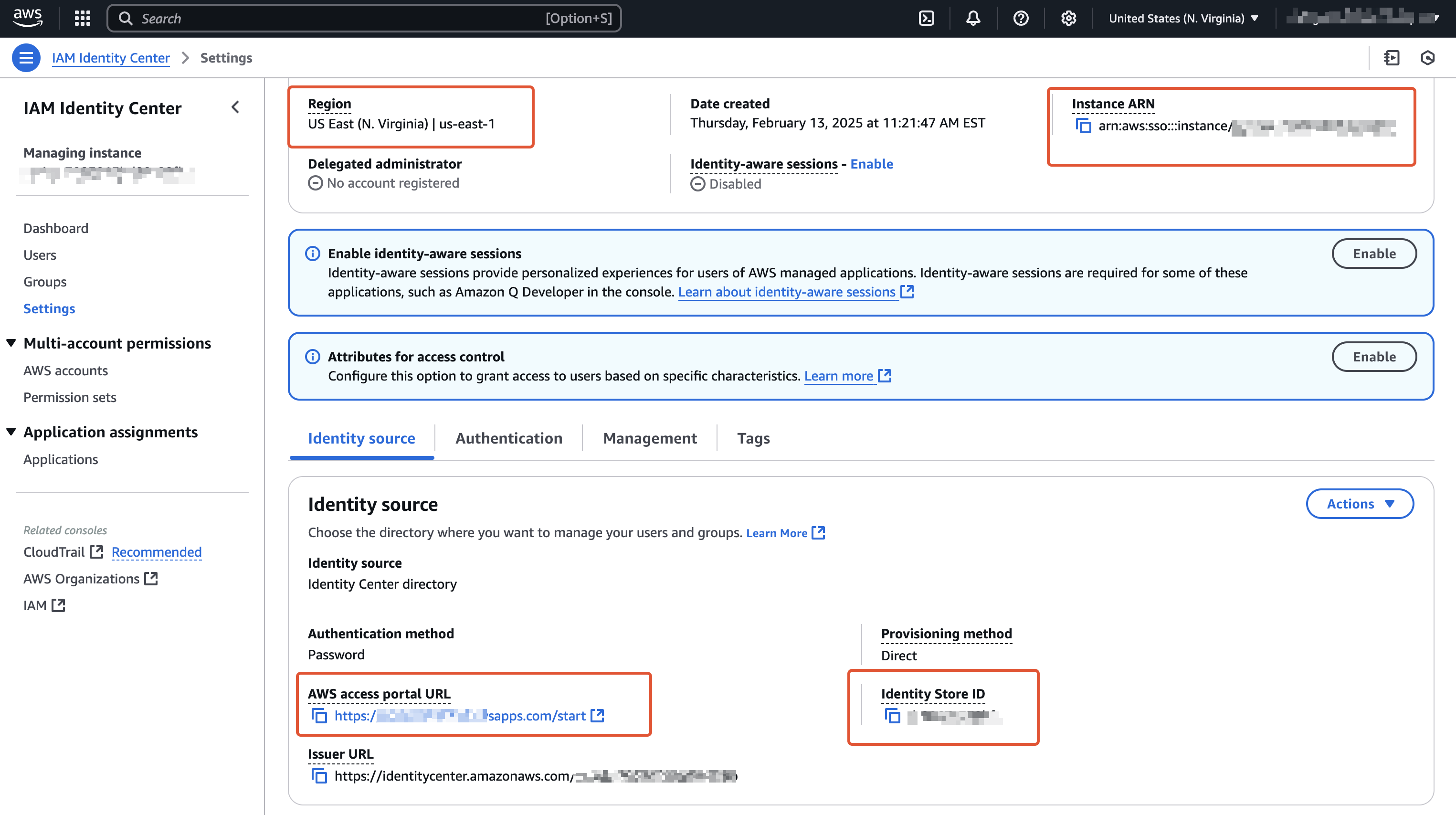 | AWS Identity Center Instance ARN | Instance ARN |